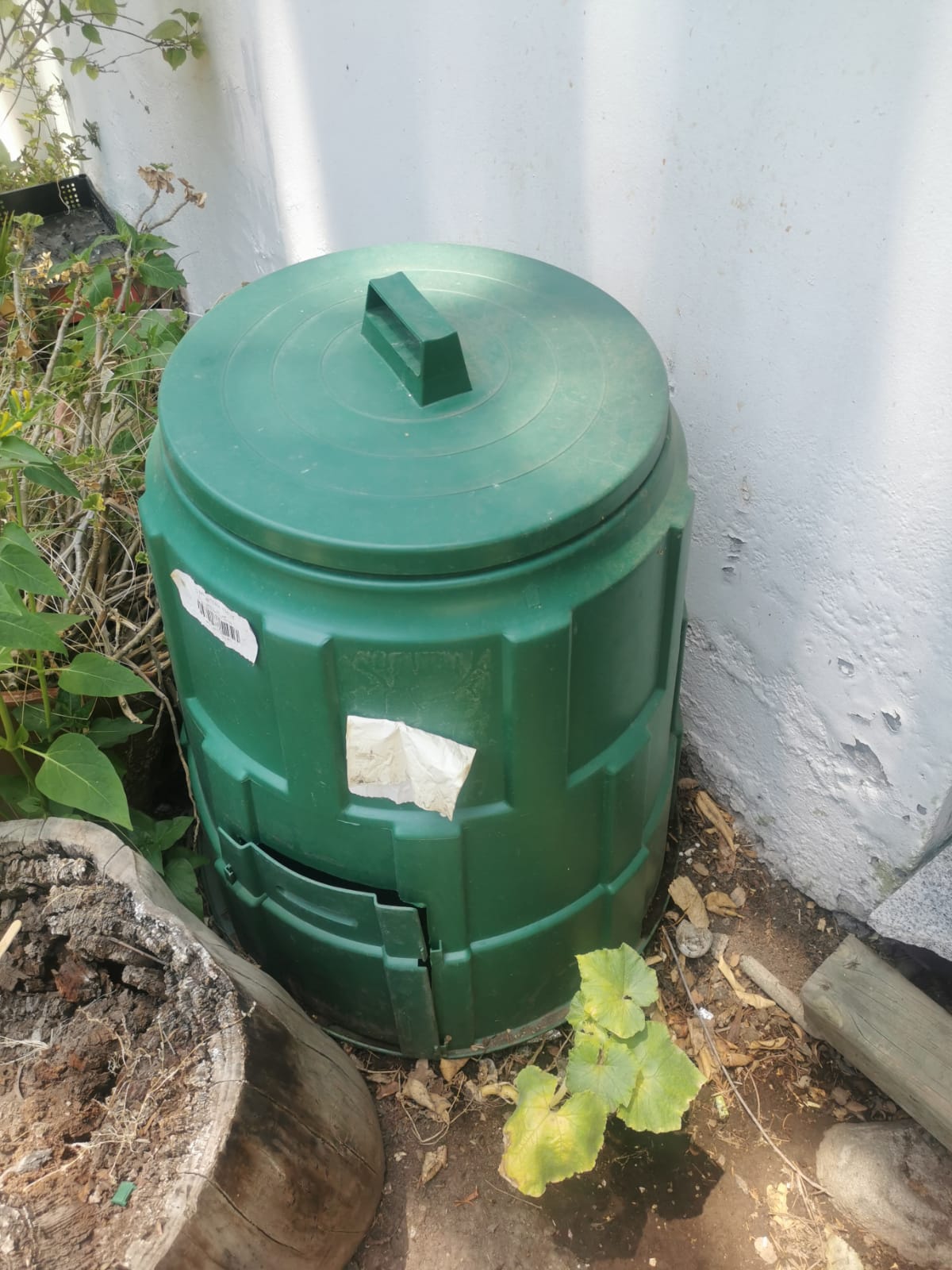 – Compostera fuera de la cocina de Dios con Nosotros.