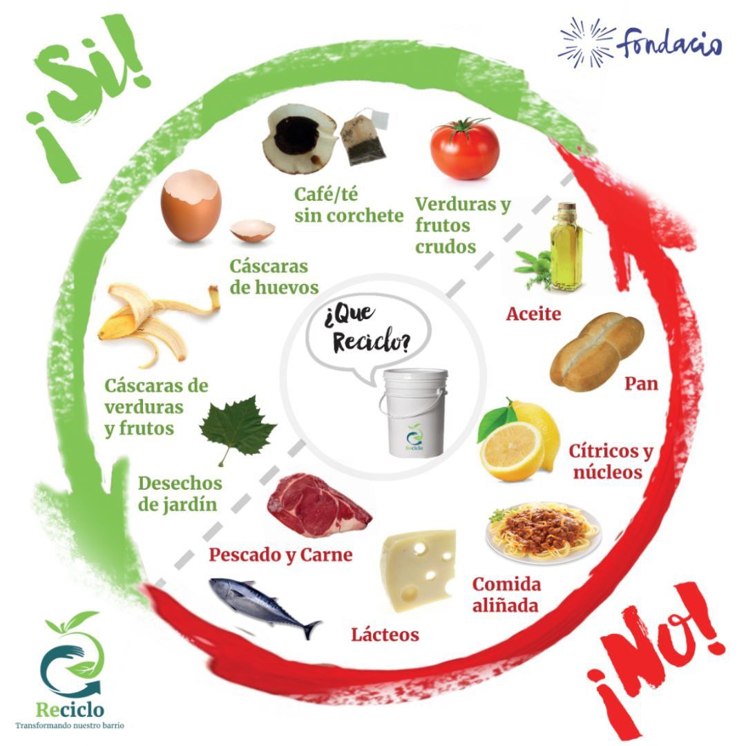 En cada uno de estos lugares encontrarás un cartel con las instrucciones para separar correctamente los residuos. También te adjuntamos un diagrama que te ayudará a identificar qué se puede compostar y qué no. En general, se puede compostar todo lo que proviene de la naturaleza, como restos de frutas, verduras, cáscaras de huevo, café, té, hojas secas, etc. No se puede compostar lo que contiene químicos, plásticos, metales, vidrios, carnes, lácteos, aceites, etc.